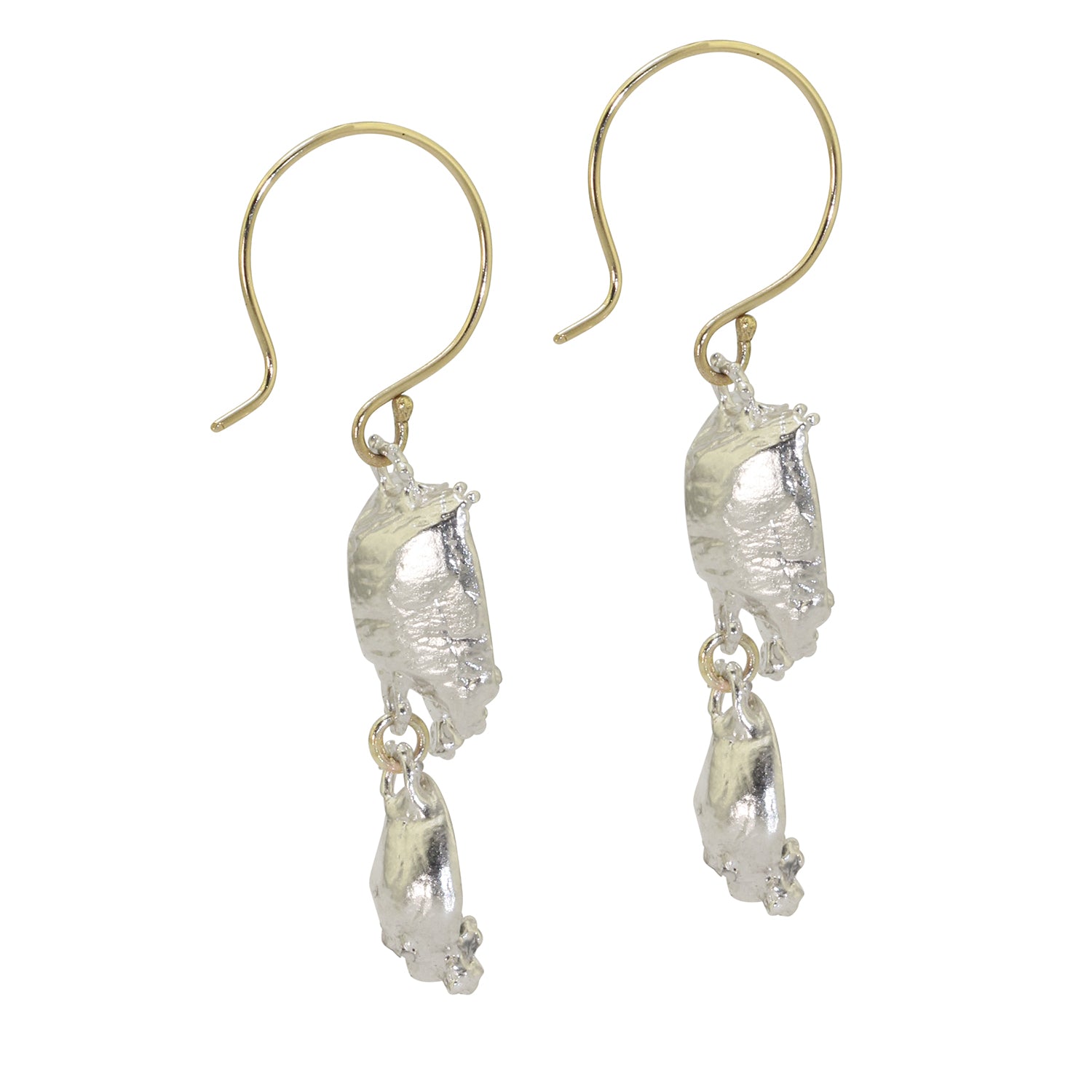 These earrings are cast in fine silver and as this is pure silver, it is very tarnish resistant. Then the "gemstones" have been carefully hand painted vitreous enamelled to around 800 degrees. Enamel does not fade in colour, ever! The handmade hooks are 9ct gold gold as it is stronger for extra durability.
