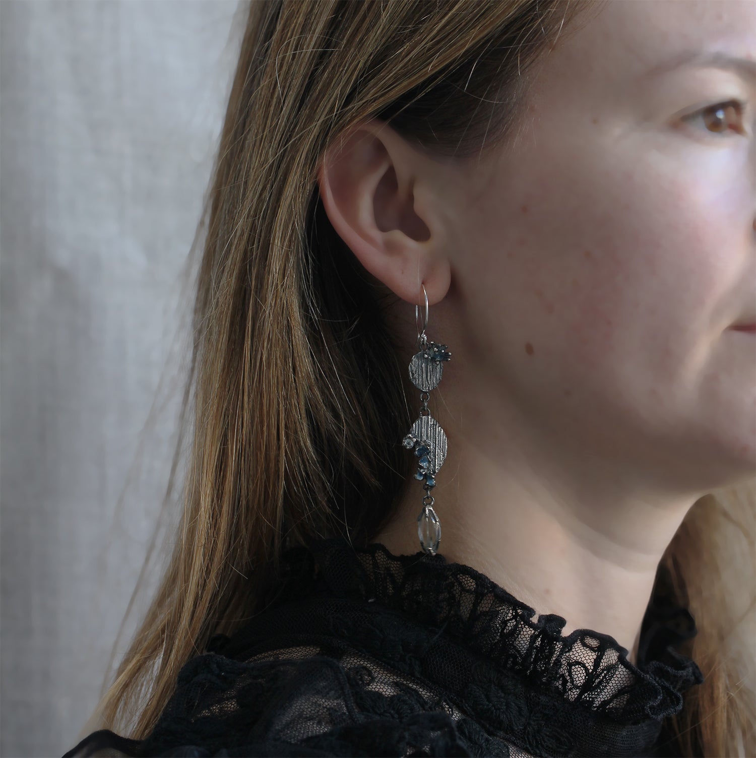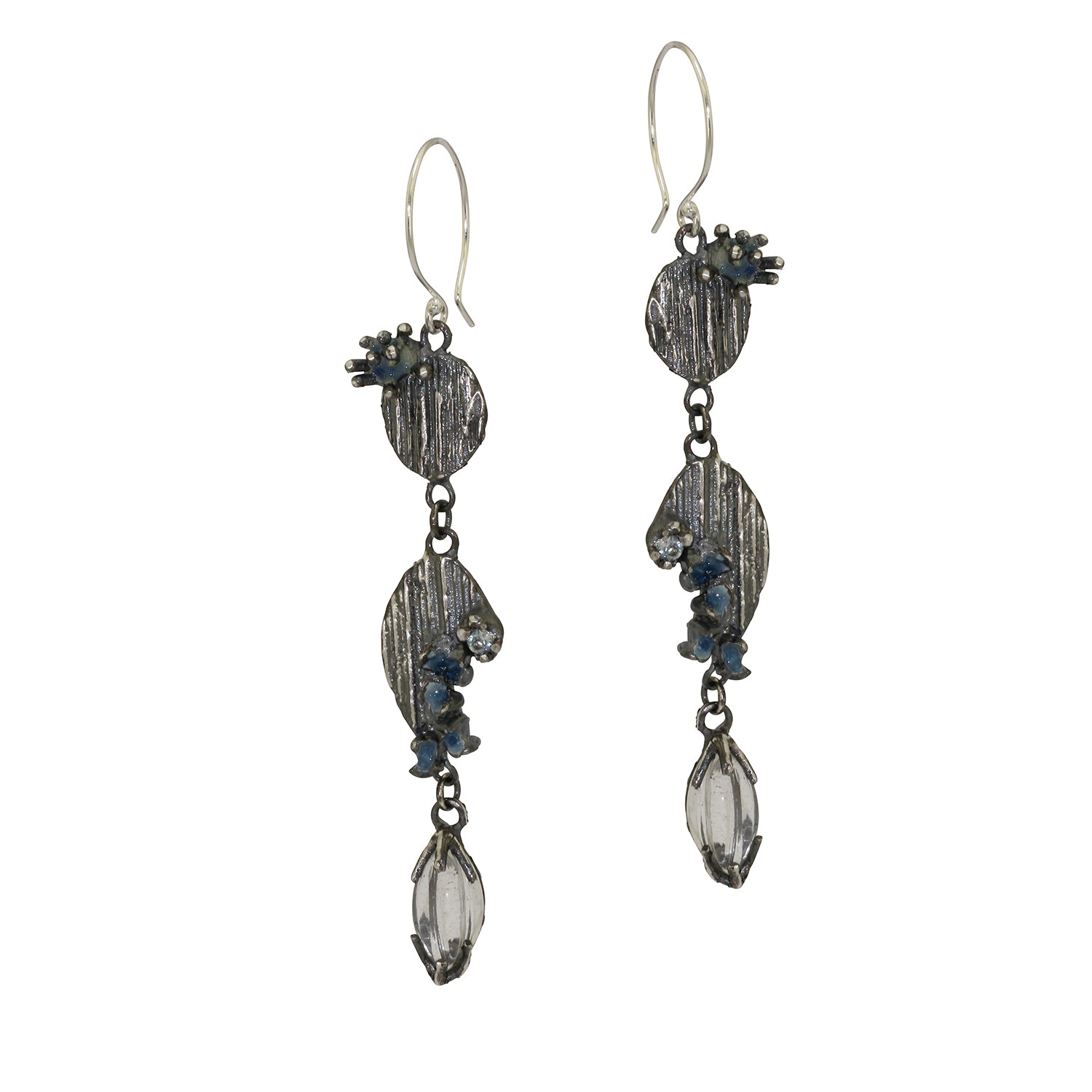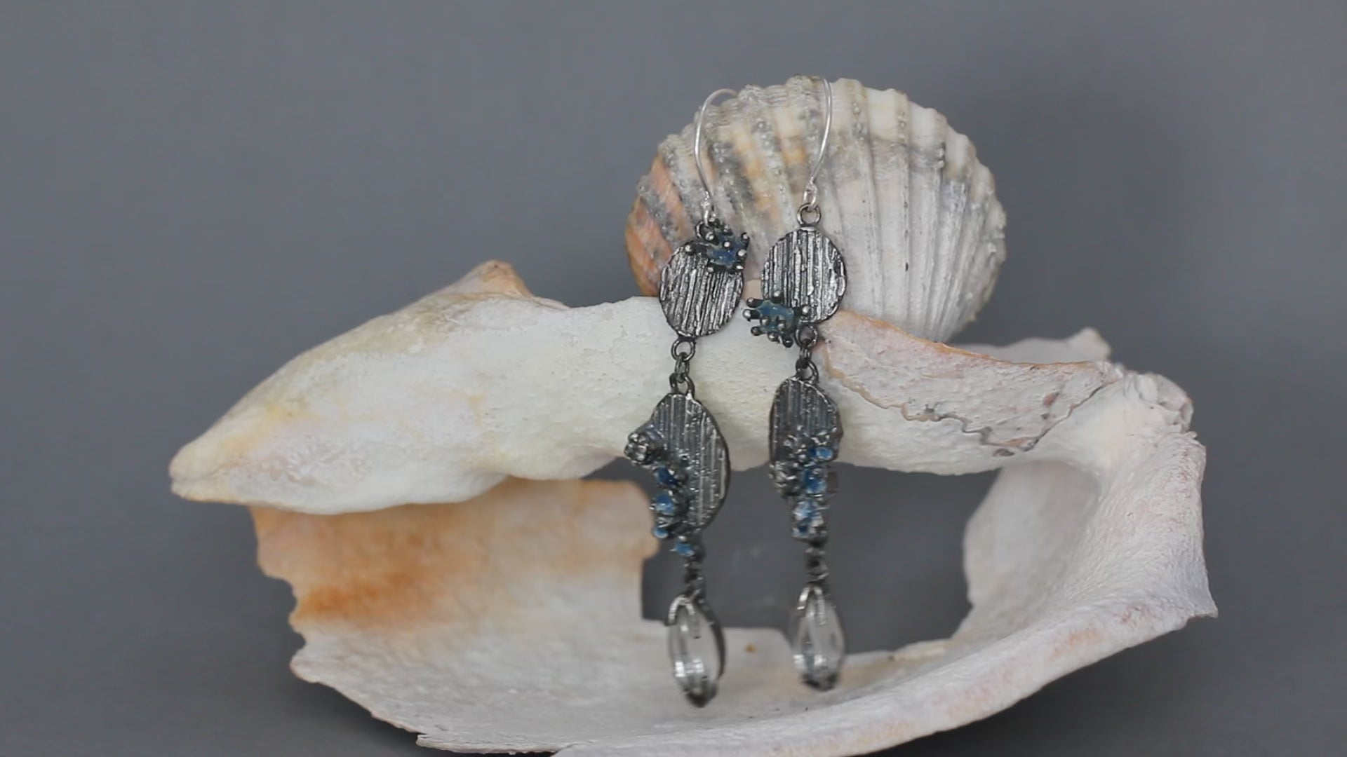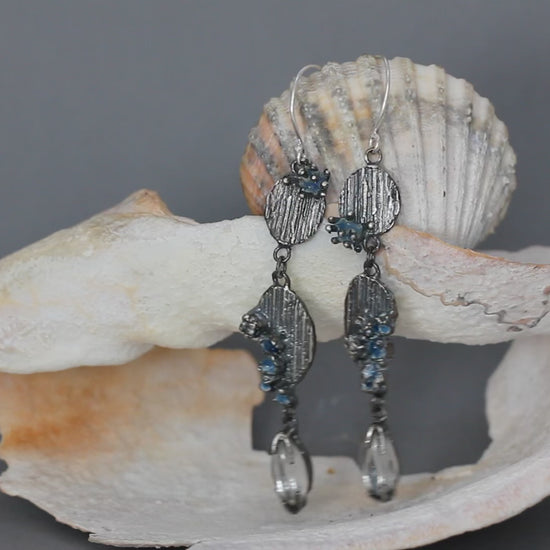 These handmade earrings encapsulate the rugged rock textures and shimmering blue sparkle found at waterfalls.